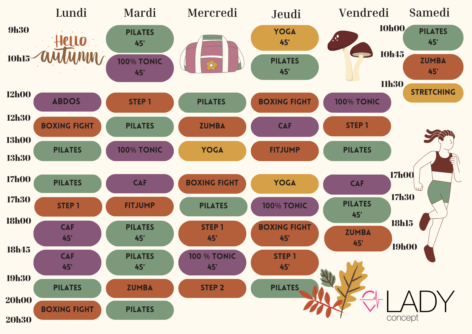 Nous proposons une variété de cours adaptés à tous les niveaux, y compris le yoga, le pilates, la Zumba, le HIIT, et bien d'autres. Notre programme est spécialement conçu pour répondre aux besoins et aux préférences des femmes.